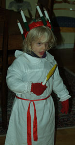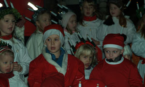 | Pepparkaksgubbe och tärna vid kyrkans luciatåg |
