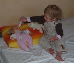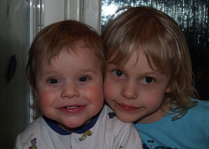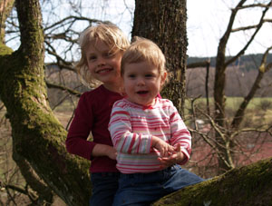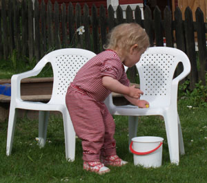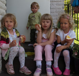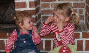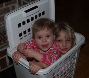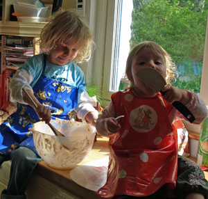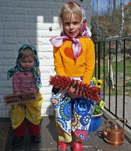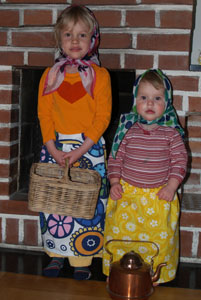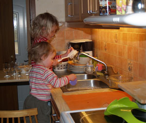 Farmors små hjälpredor. Elllinor och Maria hjälper farmor att diska i stugan